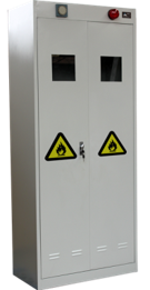 气瓶柜用于提高局部的排气通风,保护钢瓶(气瓶)不受柜子外面火灾以及保护周围物免受内部火灾的金属容器。气瓶柜内部有吹洗系统,报警器和排气孔。