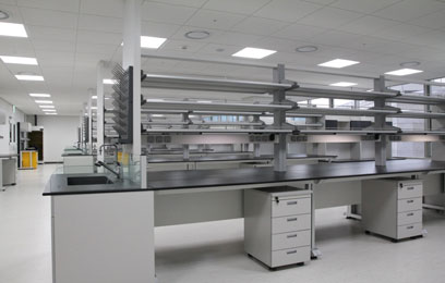 A、 用可移动的柜体辅以模块工作台面,能保障整体的柔性变化。柜体可以置于悬挂的桌架下,可以起到固定柜体的作用并可以便利的移动,设备提供足够的空间也便于地面的清洁。当柜体放置在需要的位置后,可升降的地脚可以把柜体升高,使移动轮离开地面,同时柜体的顶板升高到桌面钢架,增加桌架的承重性,安全可靠,美观大方。 可移动的柜体还可以为运输或者共享化学品和仪器迅速整件工作区域的面积。