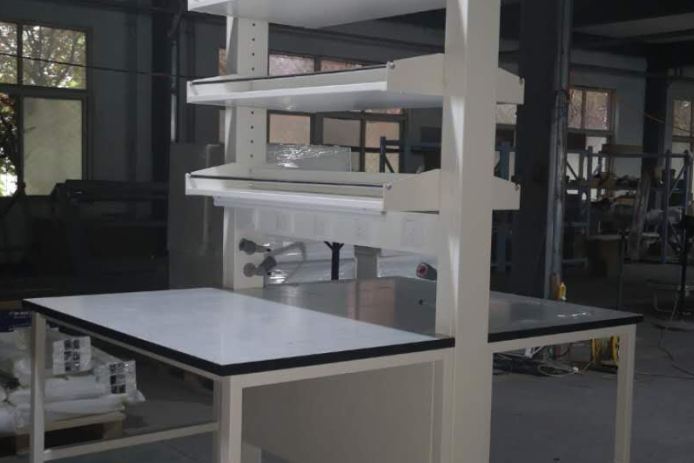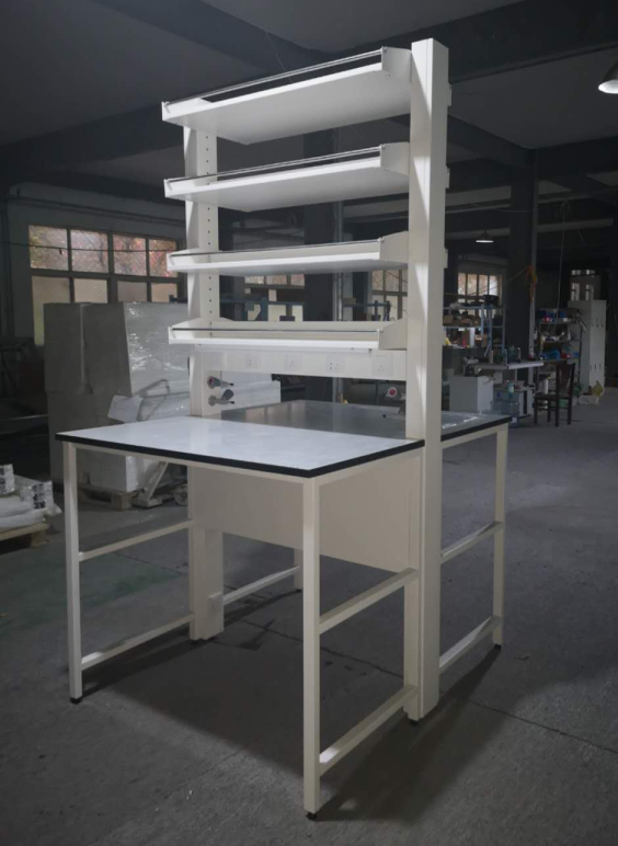 B、柜体:为落地式带滚轮,采用厚1.2mm 优质冷轧钢板(或1.0镀锌钢板),成型加工后,经过酸洗磷化处理,再经 EPOXY涂层厚度为90微米,最后经高温烘烤制作而成。整体结构宜采用模块华拼装结构,预埋螺栓螺母链接,不能采用自攻螺丝链接。模块化拼装结构能更好的维护保养和更换,增加实验台的使用寿命周期。